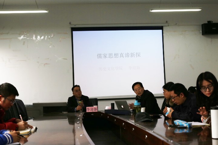 在报告中,李老师首先提出学习儒家文化必须把握其主要特点。政治上,儒家注重统治阶层及“君子”自身的修养和品德;思想上,“善”是儒家思想的核心观念,儒家力图建立惩恶扬善的文化氛围;认识论上,儒家坚持心物一元论。其次,李老师对儒家文化的基本内涵做了阐释。儒家是一门践履之学,其所倡导的“道”是人生的一种理想境界。“德”是道之用,是追求“道”的表现。最后,李老师就“学而时习之不亦说乎”、“君子必慎其独也”、“兴于诗,立于礼,成于乐”等儒家论说的内涵提出了自己的理解。